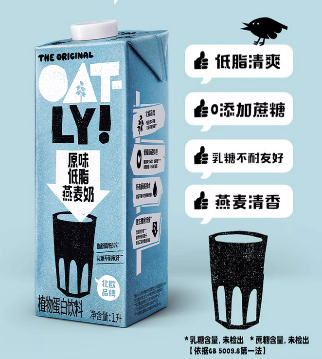 OATLY的燕麦奶以其健康、美味和可持续的特点在市场上脱颖而出。富含膳食纤维、低脂肪、无乳糖等特点满足了消费者对健康饮品的需求。