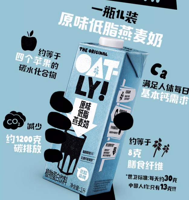 品牌定位明确:OATLY明确将自己定位为健康、可持续的植物基饮品品牌,吸引了那些具有环保意识和健康观念的消费者。