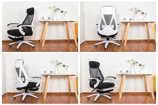 靠背是我们与椅子的第二大接触点。当我们工作累了的时候,身体后倾,头部后仰,我们的身体的上半部分将完全倚靠在椅背上,那么靠背的舒适与可靠性将尤为重要。黑白调HDNY077的背部,采用了高密度交织网布,与普通座椅相比更加细腻。椅背整体与镂空区域形成了循环透气系统,像有些上班族爱出汗的人士可谓是个贴心舒适的设计。