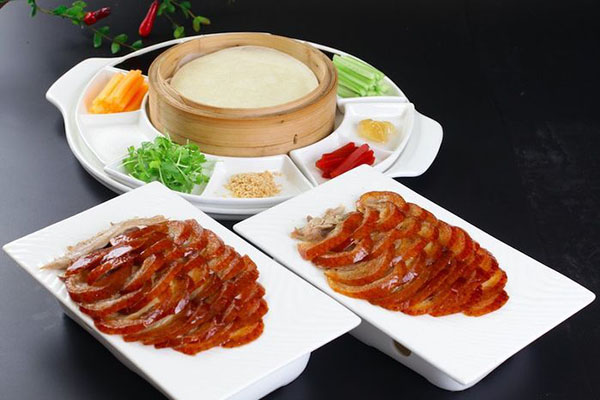 烤鸭是具有世界声誉的北京著名菜式,起源于中国南北朝时期,《食珍录》中已记有炙鸭,在当时是宫廷食品。用料为优质肉食鸭北京鸭,果木炭火烤制,色泽红润,肉质肥而不腻,外脆里嫩。北京烤鸭分为两大流派,而北京最著名的烤鸭店也即是两派的代表。它以色泽红艳,肉质细嫩,味道醇厚,肥而不腻的特色,被誉为“天下美味”。